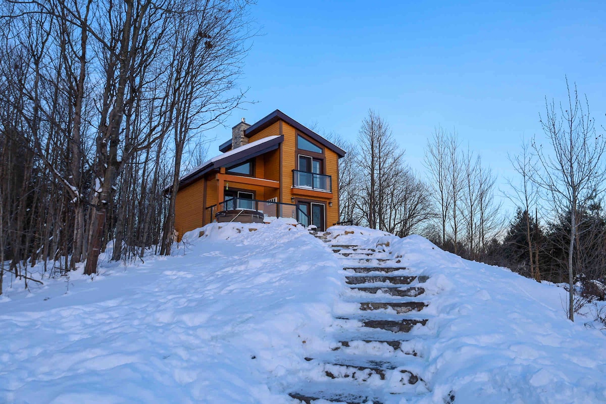 PROČITAJTE! Mt. St. Louis i Horseshoe Valley na pragu! Ovo je svijetli, veliki i privatni APARTMAN ZA GOSTE (podrumski stan). Masažna kada, terasa, ognjište i skrovita staza u šumi kako biste uživali u prirodi. Kuhinja je opremljena indukcijskom pločom za kuhanje i svim potrebnim, čak i otvaračem za boce vina:) Dnevni boravak/kuhinja/trpezarija otvorenog koncepta s TV-om i Rokuom. Spavaća soba je umjetničko djelo: tamno, tajanstveno i romantično! Prilagođeni bračni krevet napravljen od istrošenog drveta u staji spašenog iz našeg objekta.
