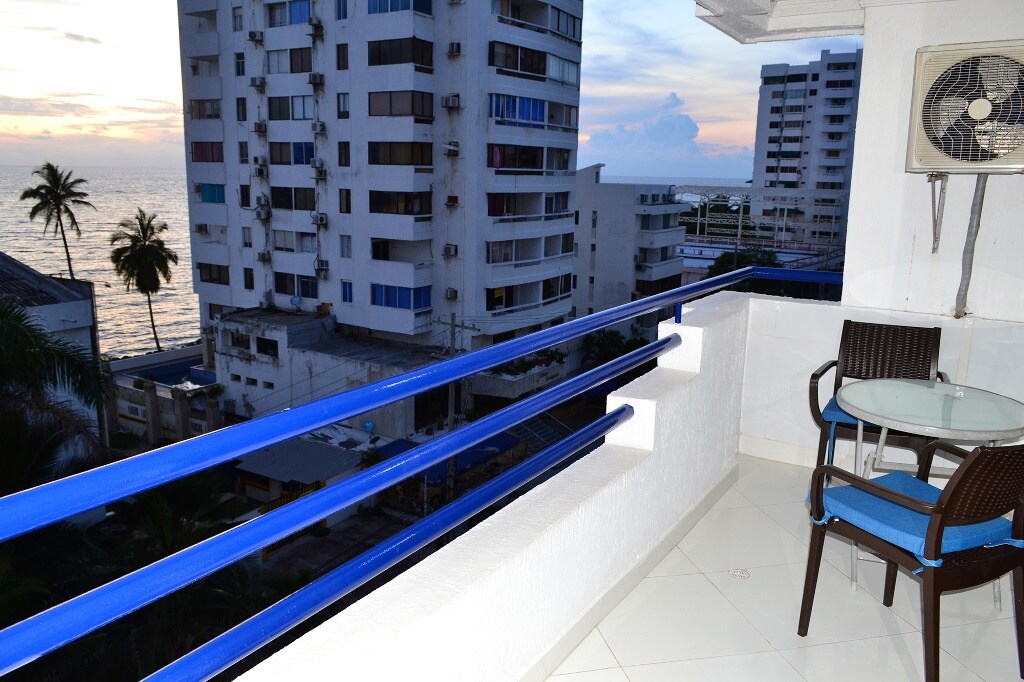🌊 Luksuzni penthouse na obali okeana u Cartageni☀️ Probudite se uz panoramski pogled na okean i historijski centar. Plaža je odmah ispred zgrade, idealna za odlazak i kupanje kad god poželite. Smješten u vrhunskom području, u blizini trgovačkih centara, restorana i samo 10 minuta od historijskog centra. 🏢Zgrada ima bazen, jacuzzi i teretanu. Uključuje udobnu sobu za rad s brzim i stabilnim Wi-Fi mrežom.