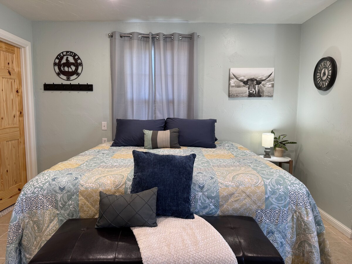 Enjoy this country setting with beautiful sunset views and horses in the pasture. Just 1/4 mile off of Hwy 62. Gates are closed every night to ensure privacy. Steps from homeowners and indoor equine facility where you can walk over and enjoy dinner at the cafe and watch folks competing on their horses! Relax in this quaint studio apartment that is newly remodeled, clean and ready to be your home away from home! Comfortably sleeps 4 with 1 king bed and 1 double bed with trundle single bed.