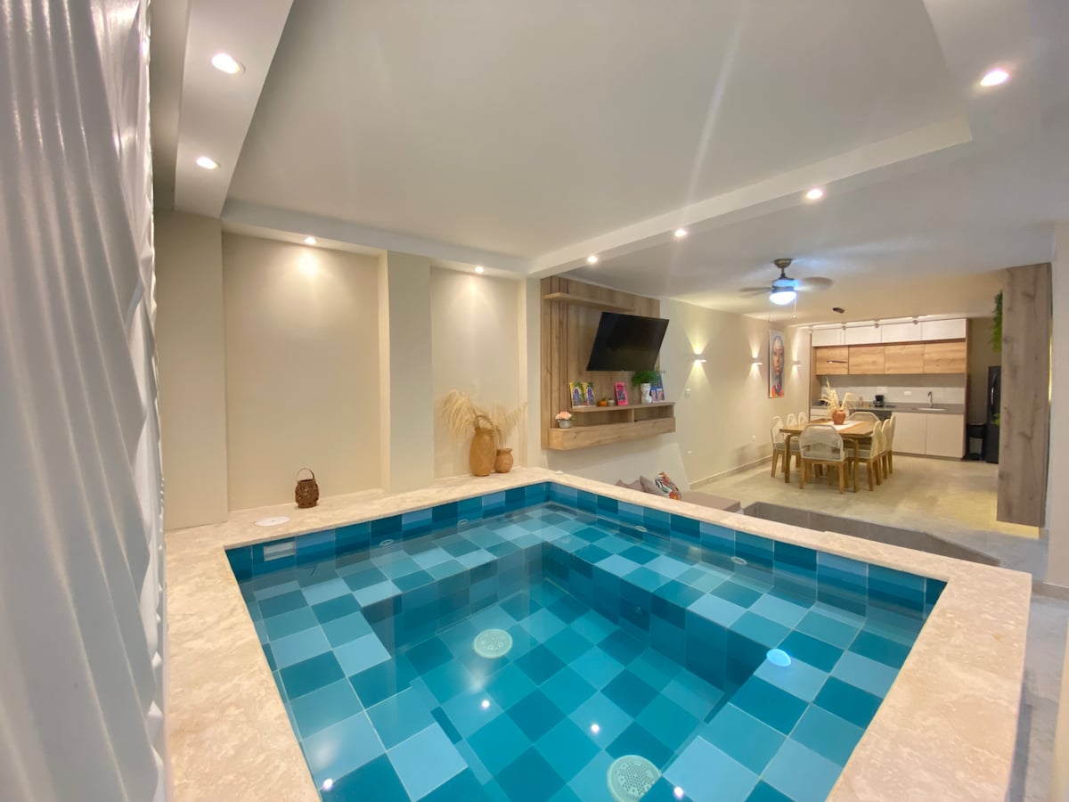 🏆 AD Design Icons Awards Finalist 2022 - Featured in Axxis 2022 Yearbook as one of Colombia's Best Homes Casa Azzurra Getsemaní: designer house of 5,812 sq ft for 10 guests in the vibrant Getsemaní neighborhood. Ideal for large groups, family reunions, and special celebrations. Includes: complimentary airport transfers (round trip), daily gourmet breakfast, private concierge 24/7, and daily housekeeping service. Customize your stay with catering from our private chef and exclusive experiences.