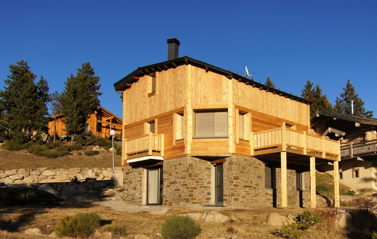 Planinska kuća u savremenom stilu na skijalištu Font Romeu u katalonskim Pirinejima, s panoramskim pogledom na planine. okrenut prema jugu🌞. 10 osoba. 3 spavaće sobe 2 kupatila s tušem- 3 wc garaža 1 vozilo 2 parking mjesta ispred planinske kuće (ukupno 3 mjesta) vrt Sauna za 3 osobe peć na pelet klasifikovana namještena turistička nekretnina ⭐⭐⭐⭐⭐ Imajte na umu da su tokom sedmice između 8:00 i 17:00 sati druge obližnje planinske kuće još uvijek u izgradnji i mogu proizvesti zagađenje bukom (gradilišta)