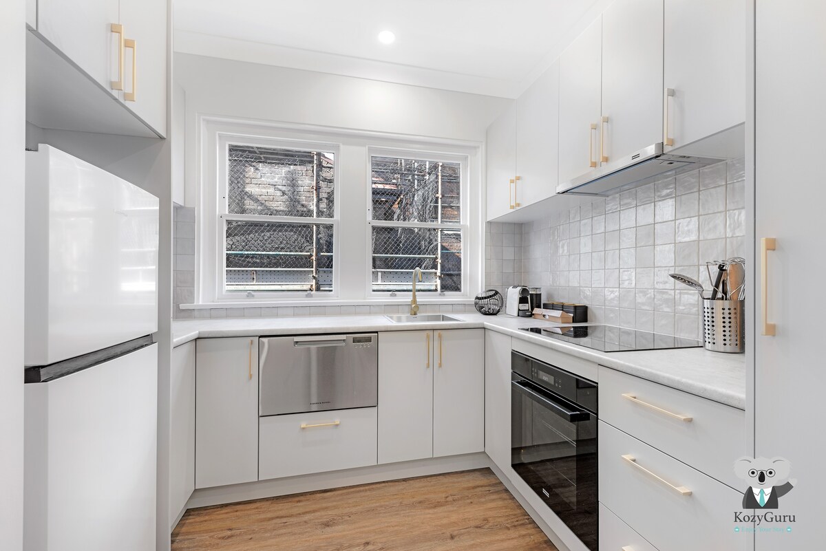 Apartman s 1 spavaćom sobom i privatnim ulazom. Nova kuhinja u potpunosti opremljena velikim frižiderom, šporetom, rernom i mašinom za suđe. Novo kupatilo i vešeraj sa mašinom za pranje/sušenje veša. Odvojena spavaća soba s bračnim krevetom i dvostrukim ugradbenim ormarom s ladicama i prostorom za vješanje. Prostrani dnevni boravak i trpezarija te balkon za opuštanje Dostupan je neograničen parking na ulici Neograničen širokopojasni Wi-Fi Walk to Bus Stop, Bondi Beach, kafići, trgovine, vrhunski restorani, jednostavno putovanje u Sydney CBD i u blizini luke Sydney