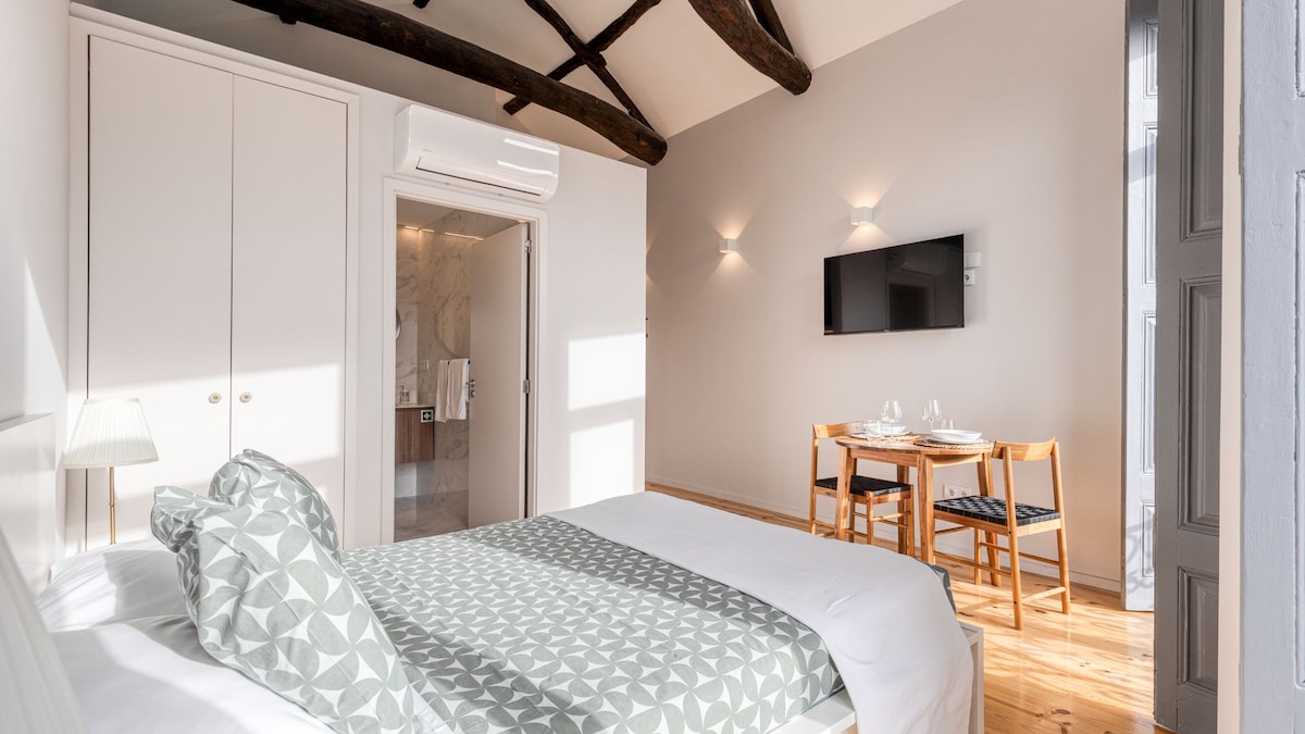 Located on the second floor, this apartment for up to four guests features air conditioning, a washer-dryer combo, a meditation room/mini gym, and a front-facing balcony. The lower-floor bedroom opens to the living room via a pocket door. Near Rua de Santa Catarina and Bolhão Market. For guests traveling with little ones, a baby pack is available on request (€25) and includes a cot with linen, high chair, bathtub, baby amenities, and a baby towel.
