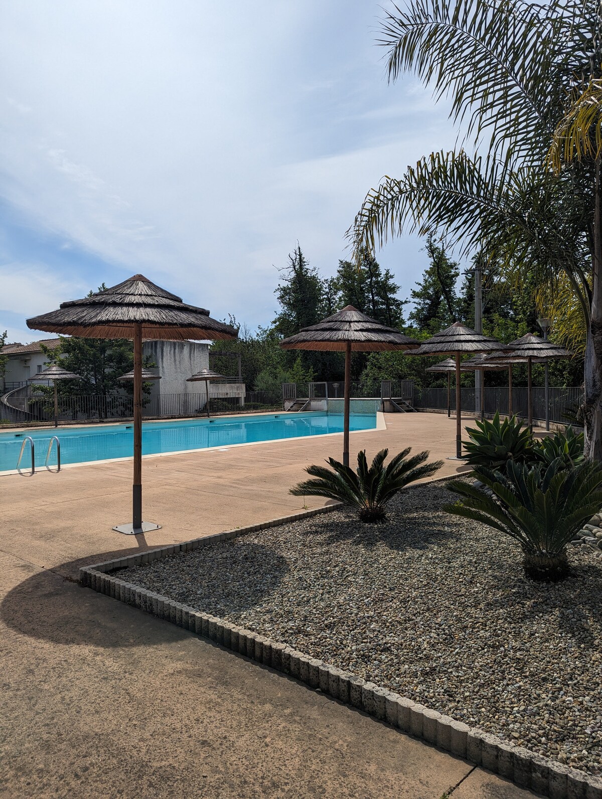 Prekrasan T2 2 min automobilom (10 minuta hoda) od plaže St. Cyprien i prodavnice (pošta, supermarket, restorani...), u novoj rezidenciji s bazenom. Svijetla dnevna soba s opremljenom i namještenom čajnom kuhinjom, trpezarijskim stolom za 4 osobe, kaučem i TV-om. Prekrasna spavaća soba s krevetom dimenzija 160 x 200, mala vešeraj s mašinom za pranje veša i kupatilo s tuš kabinom. Vanjska strana, velika terasa, 30 m2, sa vanjskim stolom i dnevnom sobom. Pogled na vrt i bazen s pogledom na rezidenciju.