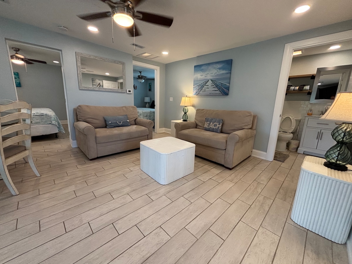 Escape to our charming private guest cottage, just 1.5 miles from Bonita Beach! This updated studio comfortably fits 2 guests and features a king bed, a fully equipped kitchen, and a large screened-in lanai. Enjoy modern comforts with a coastal vibe, complete with beach bikes and a private entrance. Perfect for a quiet, relaxing beach getaway in a safe neighborhood.