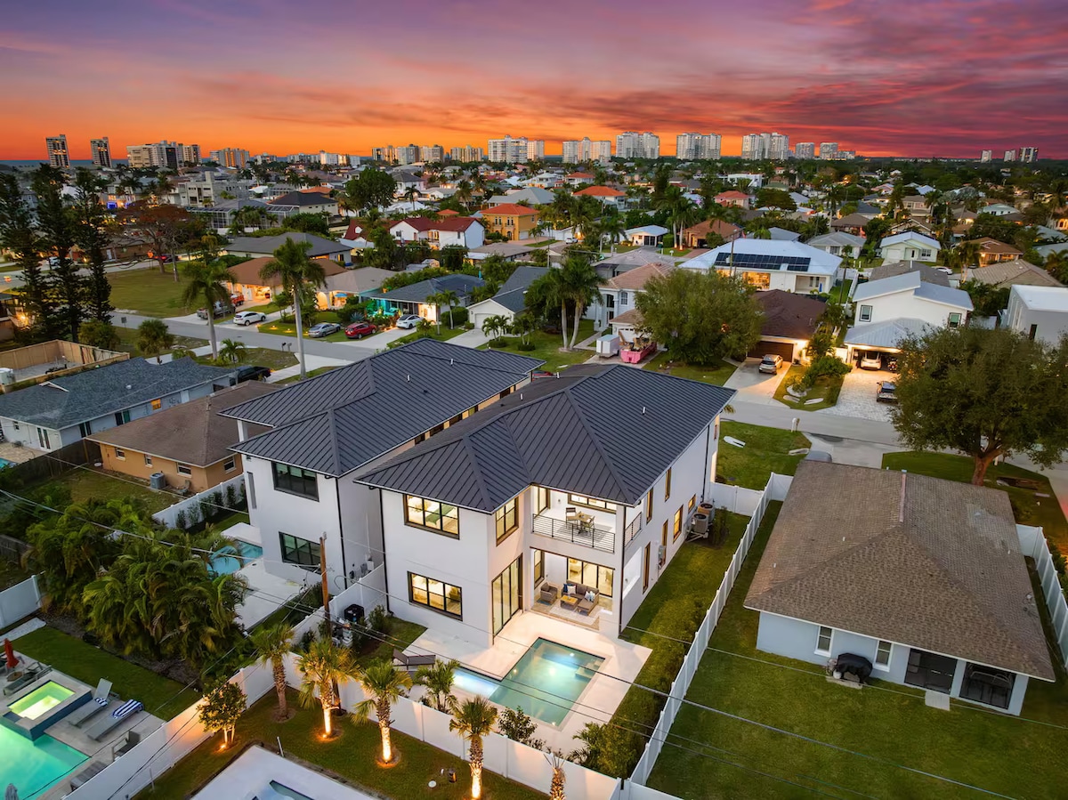 Privatno utočište uz obalu na rijeci Imperial u srcu Bonita Springsa! Pozivamo goste da uživaju u našem potpuno ažuriranom smještaju s 4 spavaće sobe i 3 kupatila sa svim novim namještajem i dekorom. Ovaj prekrasan smještaj udaljen je samo 3 km od bijelih pješčanih plaža Bonita Beacha, koji se nalazi na privatnoj vožnji sa samo 4 druga smještaja. Ovaj smještaj na poluostrvu pruža zadivljujući pogled od izlaska do zalaska sunca na oba kanala ispred i iza objekta. Naš privatni smještaj s grijanim bazenom može primiti 12 gostiju.
