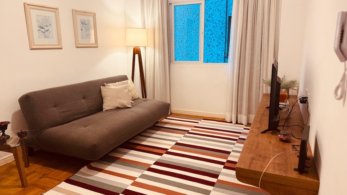 Moderan jednosobni stan nedavno renoviran na Aveniji da Praia, pored kanala 4, s bočnim pogledom na more i pored pekara, tržnica, restorana, barova i svega što vam je potrebno nekoliko metara dalje. Udaljeni smo samo 10 minuta hoda do Shopping Praiamar i Praiamar Corporate i u odličnom smo centru za one koji se moraju kretati po Santosu.