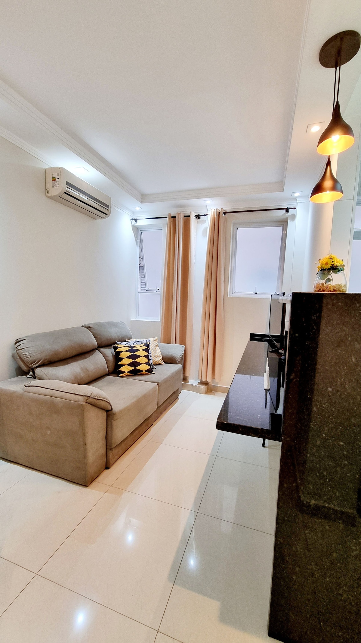 Uživajte u našem udobnom stanu u srcu Boqueirãa, Santos. Smješten u sklopu stambenog kondominija Indaiá, ima pristup pješice ili automobilom, i kroz aveniju plaže i sporednom ulicom. Naš jedinstveni prostor nudi stil i spokoj, s odličnim prirodnim osvjetljenjem, nalazi se u blizini tržnih centara, supermarketa, barova i restorana i plaže, naravno! Idealno za posebne trenutke s porodicom. Doživite pravu srž Santosa u ovom ugodnom smještaju.