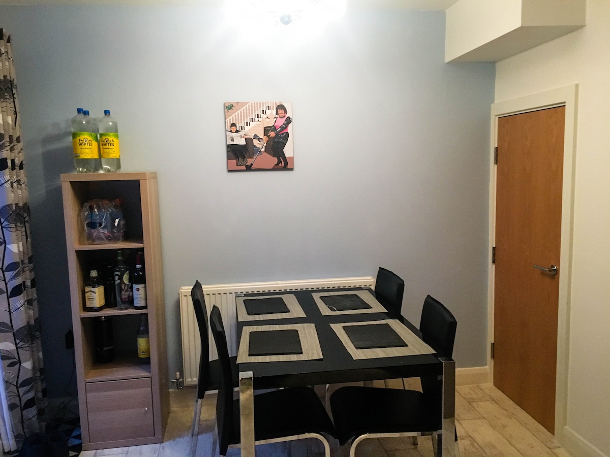 Kick back and relax in this calm, stylish space. Spacious lounge, private bedroom, private bathroom with walk in shower cubicle. Small separate study room with desk and chair. The lounge is spacious with large TV, comfy sofas to unwind & relax after a busy day. Wi-Fi in all areas. The property is located on a no-through road so very quiet. Private parking opposite the property. Close to Manchester centre & Manchester airport, perfect for overnight stay before or after a flight.