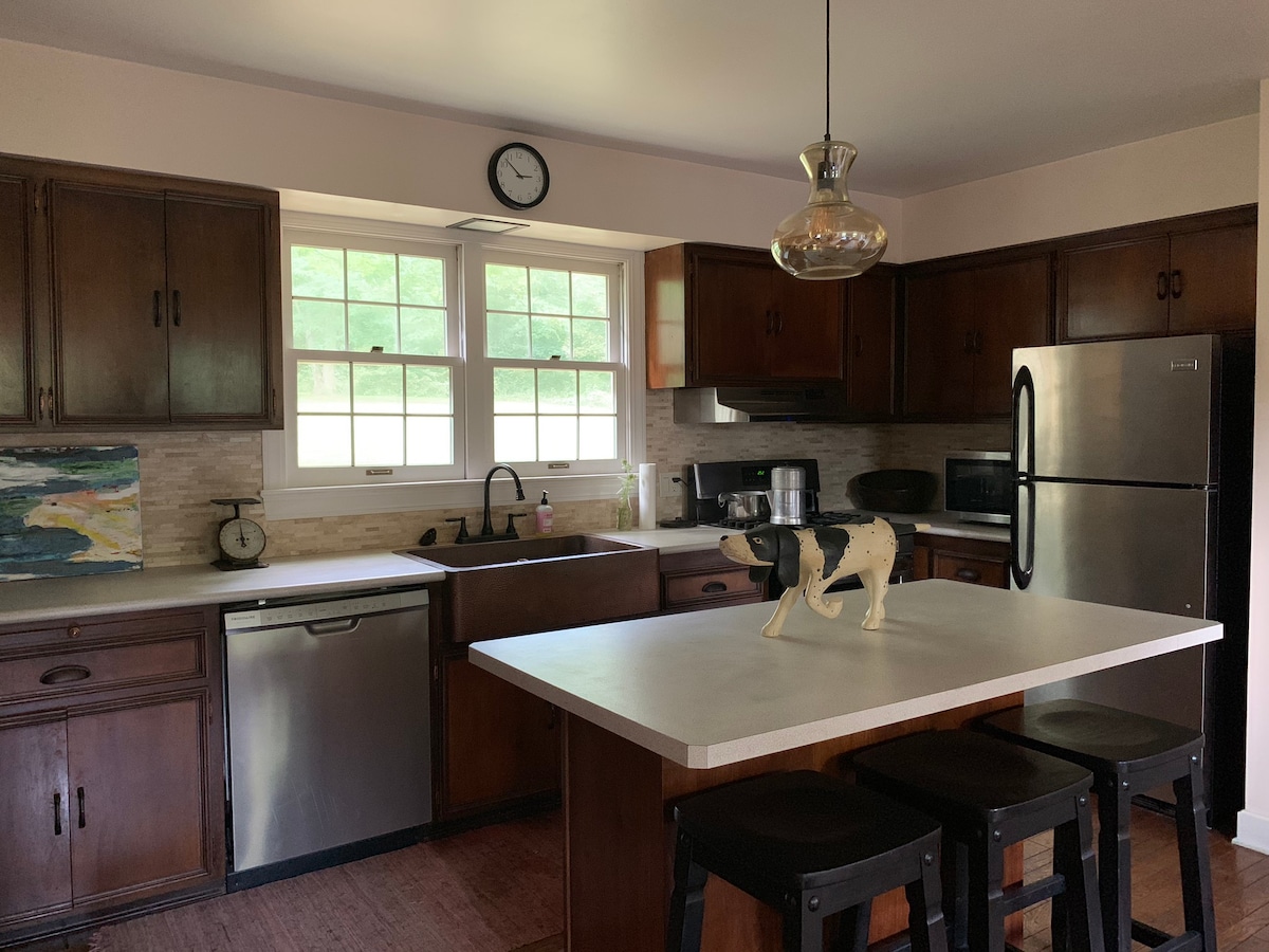 The Garden Apartment (PSTR Permit #2025-20) is a quiet and relaxing home away from home to enjoy after exploring the Cuyahoga Valley National Park. The Garden Apartment ima veliku spavaću sobu s bračnim krevetom, jazbinu s velikim kaminom na drva od pješčenjaka, potpuno opremljenu kuhinju i kupatilo s tušem. Sigurno ćete se zaljubiti u ovaj udoban smještaj! Postoji terasa od pješčenjaka, koja nudi zasjenjeni prostor za sjedenje i roštilj za kuhanje na otvorenom, kao i vatrogasni prsten za večernje lomače.