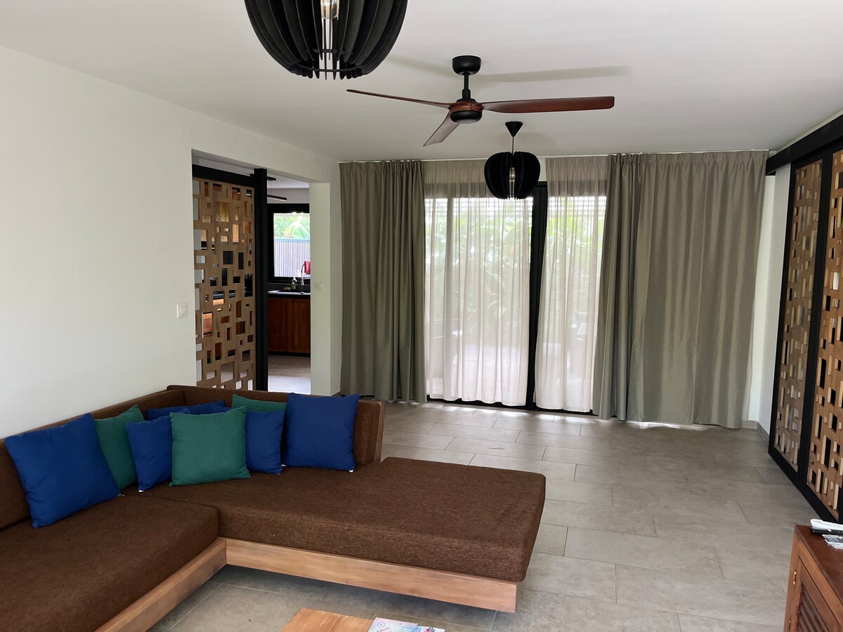 ✨ Romantično utočište uz more Uživajte u svijetlom, mirnom i ukusno uređenom stanu tik uz Indijski okean, samo nekoliko koraka od plaže Roches Noires, vrhunskih restorana i vodenih sportova. Potpuno opremljena kuhinja, udoban dnevni boravak s Wi-Fi mrežom/streamingom, klimatizovana spavaća soba (bračni krevet) i terasa za čarobne zalaske sunca. Obezbijeđena je čista posteljina i elegantni peškiri za plažu. Besplatan javni parking je dostupan u blizini.