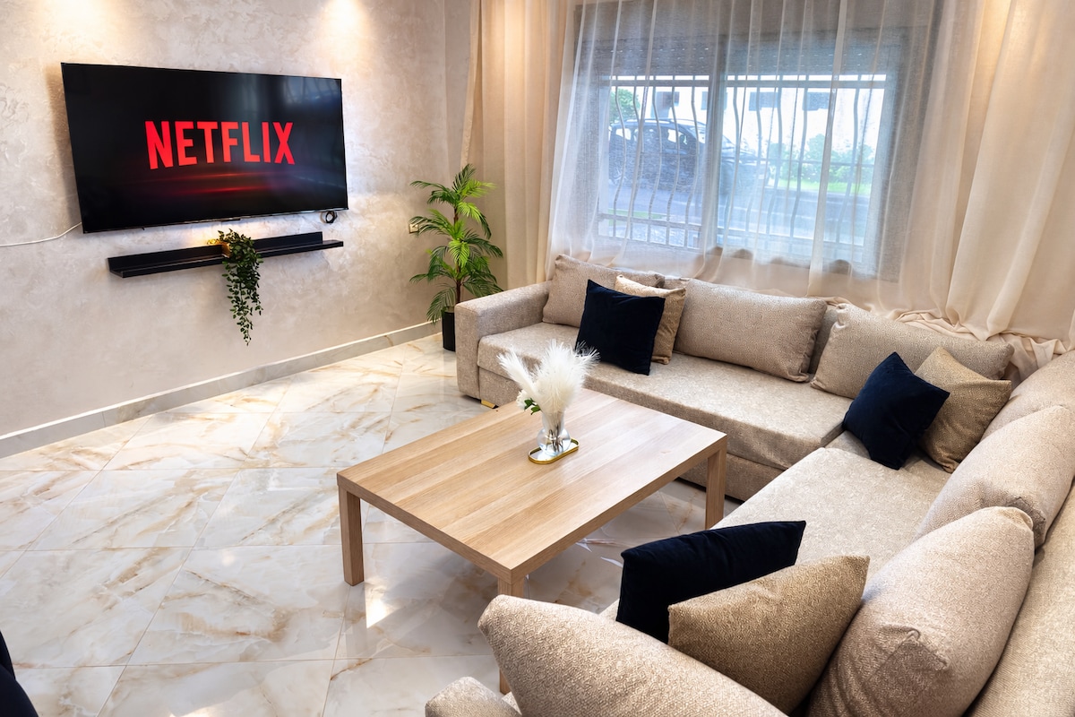 Dobro došli u naš luksuzni apartman, idealno smješten samo 10 minuta od plaže, 2 minute od aerodroma, 20 minuta od Herkulove pećine, 30 minuta od rta Spartel i 20 minuta od centra grada. Ovaj moderni i elegantni smještaj nudi sve pogodnosti koje su vam potrebne za nezaboravan boravak. ⚠️Pročitajte prije rezervisanja: U skladu s marokanskim zakonom, za marokanske državljane prihvatamo samo vjenčane parove (potreban je dokaz o vjenčanju). Neregistrovani gosti nisu dozvoljeni⛔️