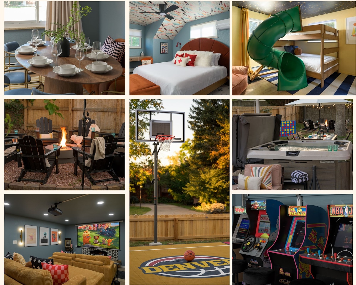 Luksuzni smještaj koji se nalazi samo 10 minuta zapadno od Denvera! (Highlands, RiNo, centar grada) i samo 10 minuta istočno od amfiteatra Red Rocks! Samo ~60 minuta do skijališta! Naš dom može primiti više od 16 gostiju u udobnim krevetima! Savršeno mjesto za porodice ili velike grupe! Sadržaji za cijelu porodicu, uključujući masažnu kadu koja se grije 0–24, plinsko ognjište, potpuno ograđeno dvorište, veliki vanjski trpezarijski stol i mnogo igara! Garaža ima čak i saunu, kompletnu teretanu i bilijarski stol! Doživljaj vas čeka :)