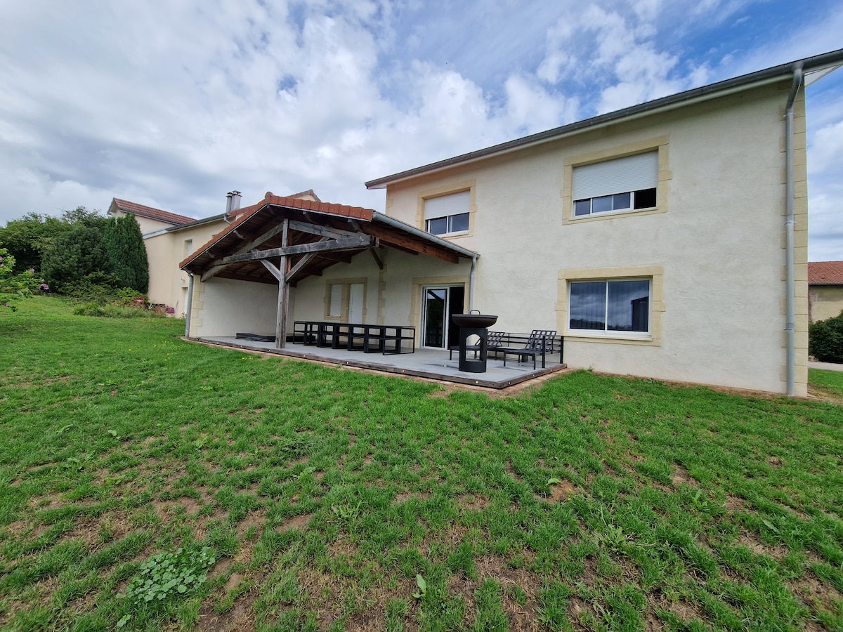 Iznajmljivanje velike kuće na selu. Smješten 5 kilometara od izlaza br. 6 autoceste A31, 10 kilometara od grada Langresa, najvećeg utvrđenog ograđenog prostora u Evropi sa svojih 8 km rampi i 4 jezera u blizini. Kuća ima veliku verandu, kuhinju s dnevnim boravkom i trpezarijom, 5 spavaćih soba i 2 kupatila. Možete uživati u predivnom pogledu i bit ćete na rubu Nacionalnog parka šuma za prekrasne šetnje u prirodi. SPA ext ljeti i zimi