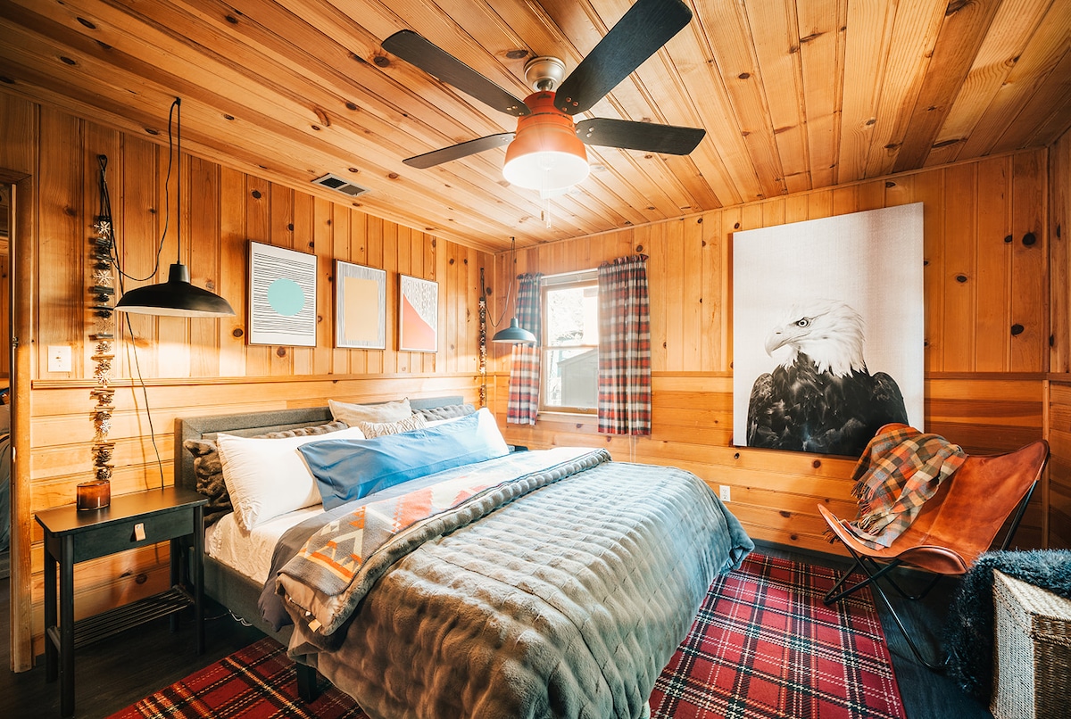 Dobro došli u brvnaru s kosim krovom u prekrasnom Big Bear Lakeu u Kaliforniji! S velikom primarnom sobom, 2 bračna kauča na razvlačenje i 1,5 kupatila, naša šarmantna brvnara nudi ugodno utočište usred zadivljujućeg planinskog pejzaža. Ovo je djelimično ograđeno, osiguravajući privatnost, a istovremeno održava otvoreni prostor. Nalazi se samo nekoliko minuta od Big Bear Lakea, SnowSummita i The Villagea. Bilo da tražite uzbuđenje na otvorenom ili se jednostavno želite opustiti u prirodi, brvnara s kosim krovom je savršena baza za vaš odmor u Big Bear Lakeu!