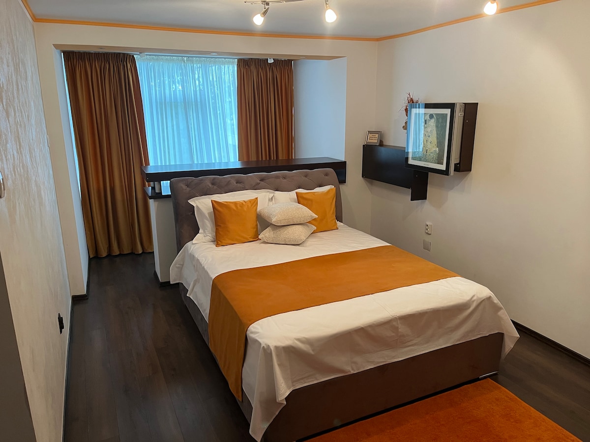 Apartman se nalazi u vrlo mirnom dijelu grada. Uslovi smještaja u hotelskom režimu s potpuno novim namještajem, s vlastitom centralnom grijanjem i klima uređajem u svakoj sobi. Spavaća soba je opremljena sa 2 kreveta 90/200 sa ortopedskim madracem hotelskog tipa. Dnevni boravak je opremljen bračnim krevetom 160/200. Apartman je moderan i ukusno uređen. Ima kapacitet za 4 odrasle osobe i namijenjen je isključivo za smještaj turista, a ne za zabave. Radujemo se vašem dolasku!