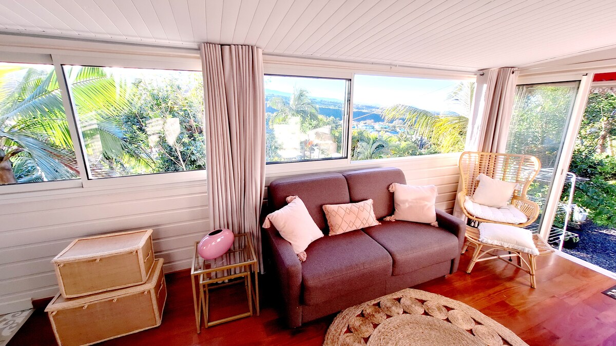 Dans un joli jardin créole clos de 1000m2 ( litchis, longanis, avocats, vanille, mangues, Pitaya, coco...) venez vous réveiller avec une magnifique vue sur les montagnes dans un bungalow récent conçu en bois local, avec son entrée indépendante et aménagée avec charme. Vous pourrez aussi vous détendre et vous relaxer toute l'année dans une piscine partagée en pierre naturelle entre 28 et 30°C. À partir de 7 nuits et au delà, une remise est consentie. Alors n’hésitez plus ! ☺️