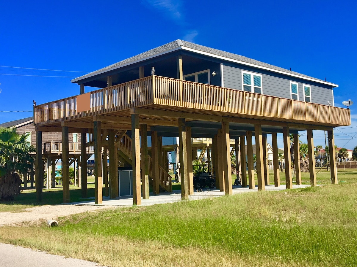 Opustite se u ovoj mirnoj seoskoj kućici s pogledom na vodu sa svake strane. Zaljev s jedne strane i plaža s druge strane. Otvoreni prostor čini da se osjećate kao da ste doslovno okruženi vodom. Dostupna je kompletna kuhinja i aparat za kafu. Dvije spavaće sobe za najviše 6 osoba. Mirno okruženje s pristupom marini niz cestu. Lansiranje kajaka, ribolov u kanalu ili pristup brodu od kuće do nevjerovatnog božićnog zaljeva. Marina je odmah niz cestu. Kratka vožnja do Galvestona!