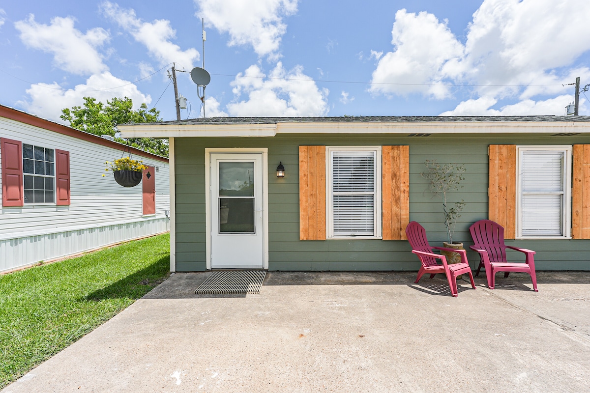 Dođite se opustiti u našem udobnom smještaju na rijeci, samo sat vremena vožnje jugozapadno od Houstona. Uživajte u miru i tišini dok se izležavate na terasi i posmatrate mnoge kolibrije. Opustite se uz čašu vina i večeru dok se družite s prijateljima i porodicom na terasi, doku ili pored ognjišta. Uživajte u ribolovu ili plivanju na rijeci ili u obližnjim gradovima na plaži Surfside, Sargent ili Matagorda. Toliko prostora za toliko zabave!