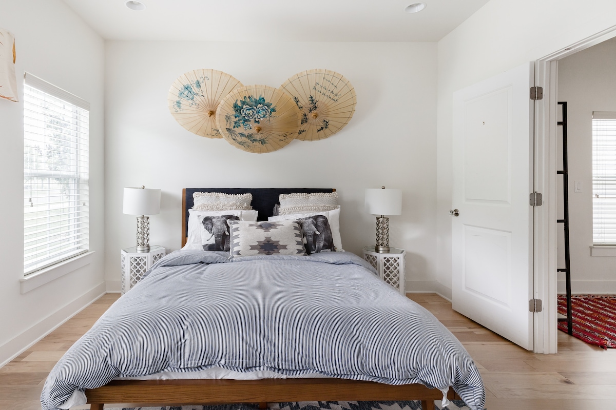 Istražite jedinstvene prodavnice i restorane u Houstonu ili staze za pješačenje i bicikle Buffalo Bayou! Ovaj prostor je savršeno smješten između Montrosea, Muzejskog okruga i medicinskog centra svjetske klase u Houstonu. Opustite se na ljuljački papasana u vanjskom prostoru za opuštanje u prostoru ovog umjetnika na dva kata u historijskom kvartu Westmoreland. Obilne biljke u kući, elegantna zidna umjetnost i ružičaste stolice za objedovanje Eames čine eklektično utočište. Blizu Midtowna i Downtowna! Prekrasni vanjski prostor za opuštanje, ljuljačke na stolicama, opuštajuće viseće ležaljke. Dodatni sadržaji uključuju opremljenu kuhinju, Roku, grickalice, ogrtače za kupanje, igre, knjige, sapun za pranje veša, parni čistač odjeće PureSteam i dobre vibracije♥️ Uživajte u mnogim vanjskim prostorima koje imam. Također se možete okušati u dodavanju murala na mom umjetničkom zidu Živim u glavnoj kući na imanju. Rado ću odgovoriti na pitanja ili dati prijedloge. Ako vam zatrebam, stojim vam na raspolaganju! U ovom kvartu se često održavaju pješačke obilaske kako bi se podijelila historija prvog susjednog predgrađa u Houstonu. To je područje do kojeg se može doći pješice s mnogim restoranima, kafićima, kafićima i pekarnicama udaljenim samo 5 minuta hoda u bilo kojem smjeru. Pristup željezničkoj pruzi nekoliko blokova dalje, iznajmite b-cikl (gradski bicikli u Houstonu) zaustavlja jednu ulicu dalje, uskočite u Uberu... Dvospratna kuća