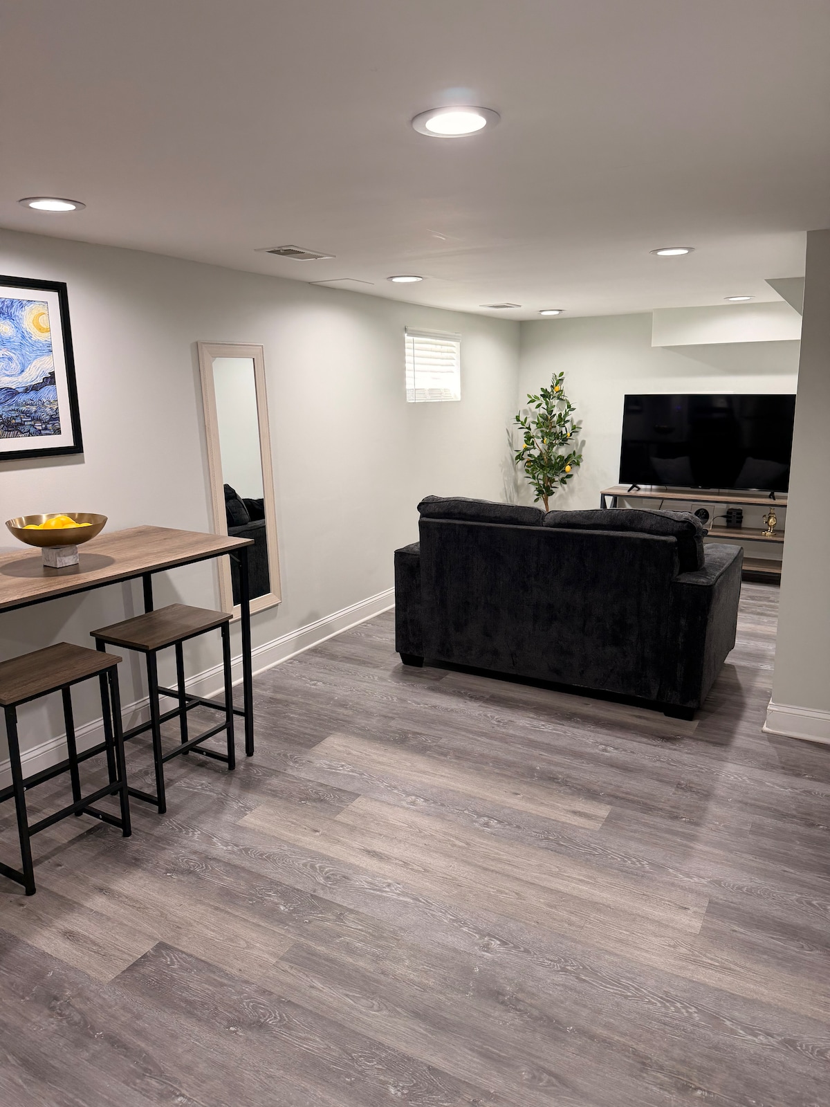 Sunčan i miran podrumski stan površine oko 150 kvadratnih metara i ima privatni ulaz. Živimo uz stepenice, ali imat ćete privatnost nakon dolaska. Stan je udaljen oko 1,3 milje od Univerziteta Maryland, sedam milja od DC-a, kratka šetnja do metroa i drugog javnog prevoza. Kupovina, restorani, Beltway i rekreacija na otvorenom udaljeni su nekoliko minuta. Gost ima terasu sa stolom i stolicama i veliko stražnje dvorište za sjedenje i uživanje po lijepom vremenu.