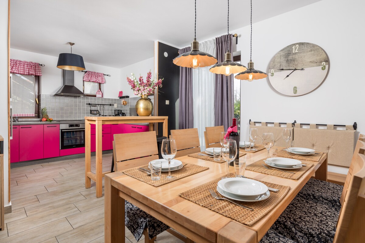 Dobro došli u našu luksuznu vilu, smještenu u mirnom okruženju s prekrasnim pogledom na Kvarner. Naša vila nudi modernu udobnost i tradicionalni šarm s privatnim bazenom, velikim vrtom i terasom s roštiljem. Potpuno opremljena kuhinja, besplatan Wi-Fi, veliki TV i razne aktivnosti u blizini čine vaš boravak nezaboravnim. Uživajte u udobnosti i gostoprimstvu koje vam nudimo. Rezervišite sada i doživite poseban odmor u našoj vili!🌴☀️