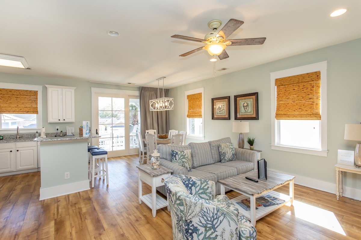 Totalno plaža - Jedinica br. 2 je jedan od 4 prostrana stana koja se nalaze u bloku od plaže i 2 bloka od pristaništa za ribolov u srcu historijskog Cherry Grovea. Svaka jedinica ima 900sf sa 2 spavaće sobe, jednim kupatilom, kompletnom kuhinjom i dnevnim boravkom s pristupom prednjem i stražnjem trijemu. Stražnji trijem gleda na prirodni ribnjak prepun ptica koje vode i drugih divljih životinja. Gostima su na raspolaganju osnovna oprema: posteljina, peškiri/odjeća za kupanje, posuđe i aparat za kafu keurig. Jedinica br. 2 je na 2. spratu desno.