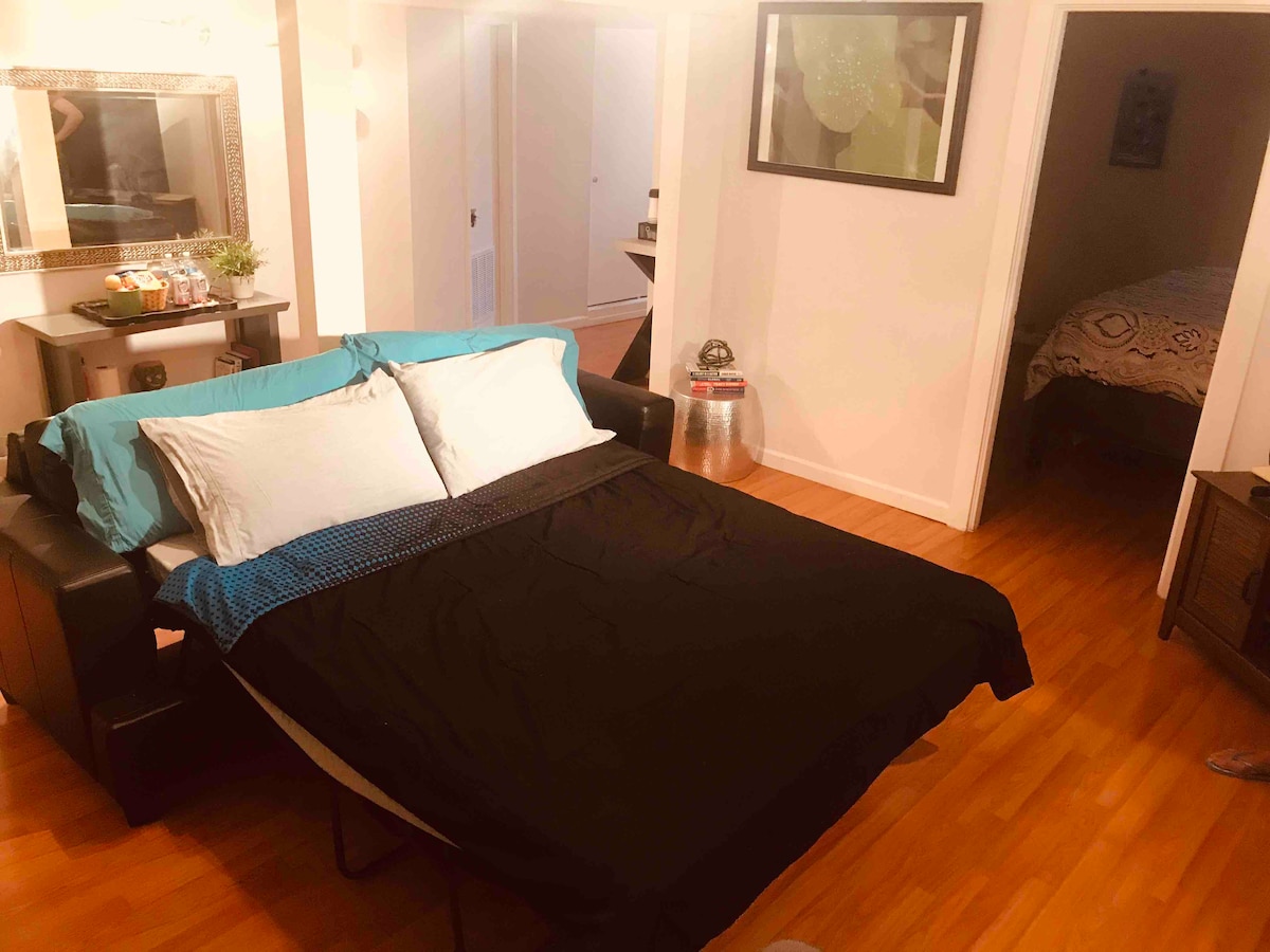 Studio (pristup garaži u prizemlju) s privatnim kupatilom, raskošnom privatnom terasom. Bernal Hts je moderno selo u San Franciscu. Uz izbor nekih od najpopularnijih barova, restorana i parkova Bernalova lokacija nema samo praktičnost urbanog čvorišta, već ima i vrlo jednostavan pristup javnom prevozu. Studio je uvijek profesionalno očišćen. Očekujte spuštene jastuke, debeli pokrivač i kvalitetnu padobranu ili posteljinu iz Brooklinena. **Ulaz u zgradu je zajednički; Ulaz u stan je privatan.