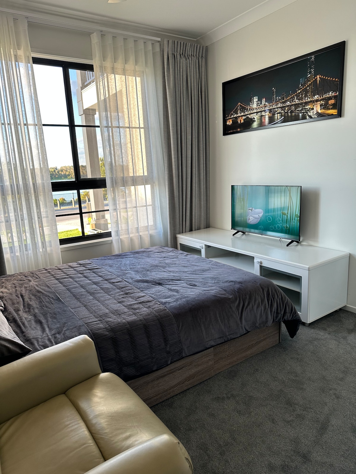 Moderan stan, savršeno pozicioniran u centru južnog Brisbanea s PREKRASNIM pogledom na rijeku! Prostor je impresivno uređen i uređen s udobnošću u prvom planu vašeg boravka. Vrlo blizu Southbanka, muzeja, Mater, QUT i kongresnog centra. Dvije velike spavaće sobe, teretana i pristup bazenu, kao i prekrasan otvoreni prostor za opuštanje, garantuju da će vaš boravak biti elegantan i udoban. Uživajte u poslijepodnevnom piću s prvoklasnim panoramskim pogledom na grad i rijeku s balkona!