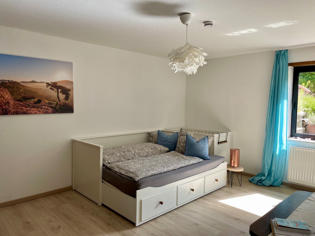 Eagle's Nest – Your Place in the Palatinate Rock Land! Novouređeni, s ljubavlju namješteni stan za dvije osobe u Niederschlettenbachu. Topli prirodni tonovi, moderni sadržaji i potpuno opremljena kuhinja čine ga ugodnim utočištem nakon dana provedenog u prekrasnom Dahner Felsenlandu. Južni Palatinate, Južna vinska ruta i Alsace su u blizini. Mi, mlada porodica, živimo direktno iznad i rado ćemo vam pomoći sa savjetima o regiji!
