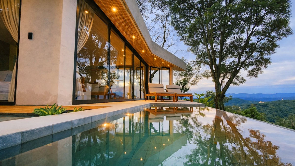 Um delicioso chalé na árvore, onde cada detalhe foi cuidadosamente planejado para proporcionar uma experiência única de serenidade e conexão com a natureza. Nosso chalé apresenta uma vista panorâmica para a mata preservada, permitindo uma imersão total na beleza da natureza. A arquitetura de vidro integra você à natureza, o quarto climatizado oferece conforto, enquanto o deck com banheira SPA oferece um local ideal para relaxar, escutar o canto dos pássaros e apreciar o ambiente tranquilo.