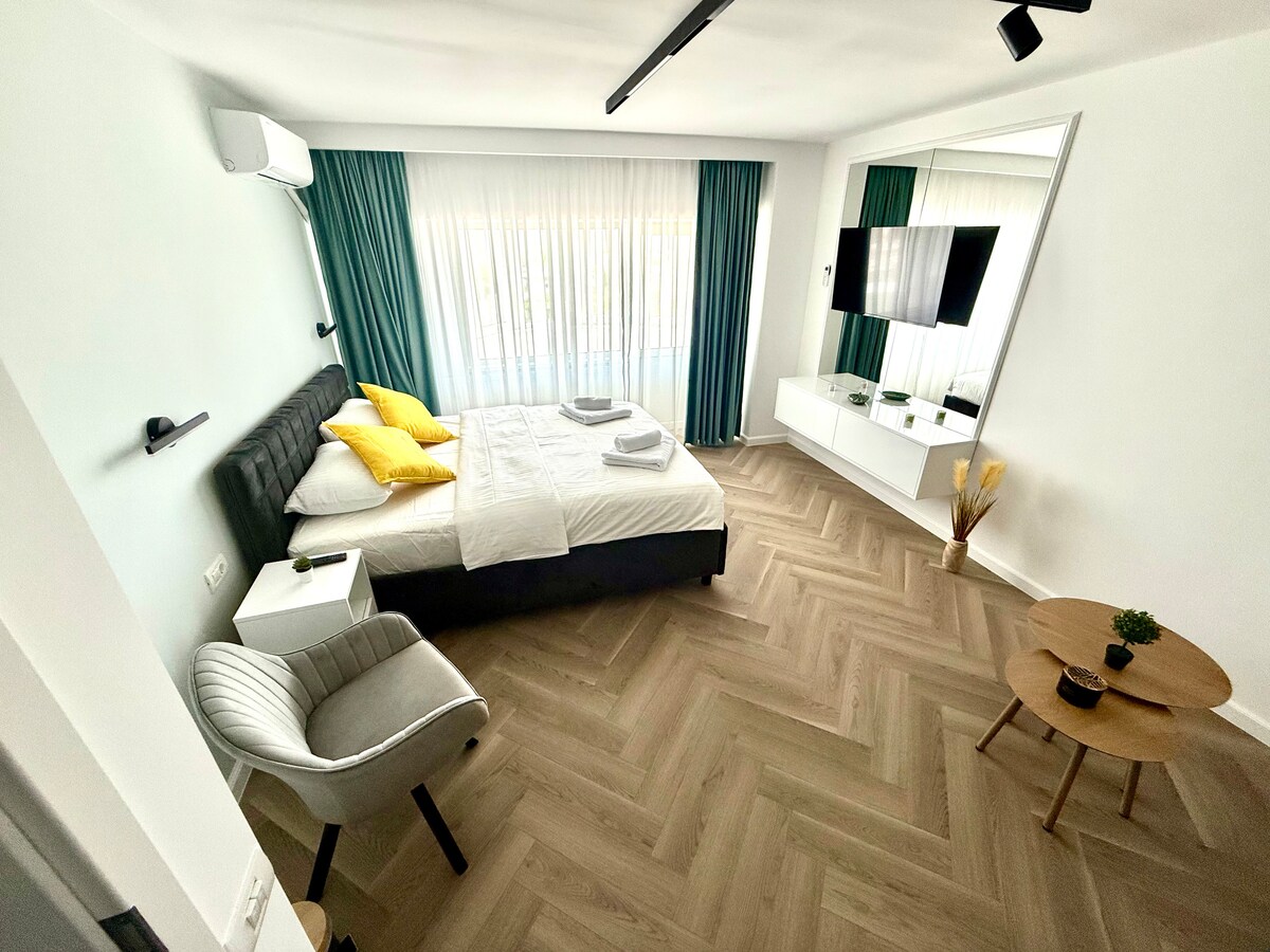 Welcome to Serenity Haven — your peaceful escape in the heart of Bucharest. This refined studio is designed in a modern minimalist style, with warm tones, natural textures, and elegant finishes that create a calm and stylish atmosphere. The perfect retreat for those who appreciate simplicity, comfort, and a great location.