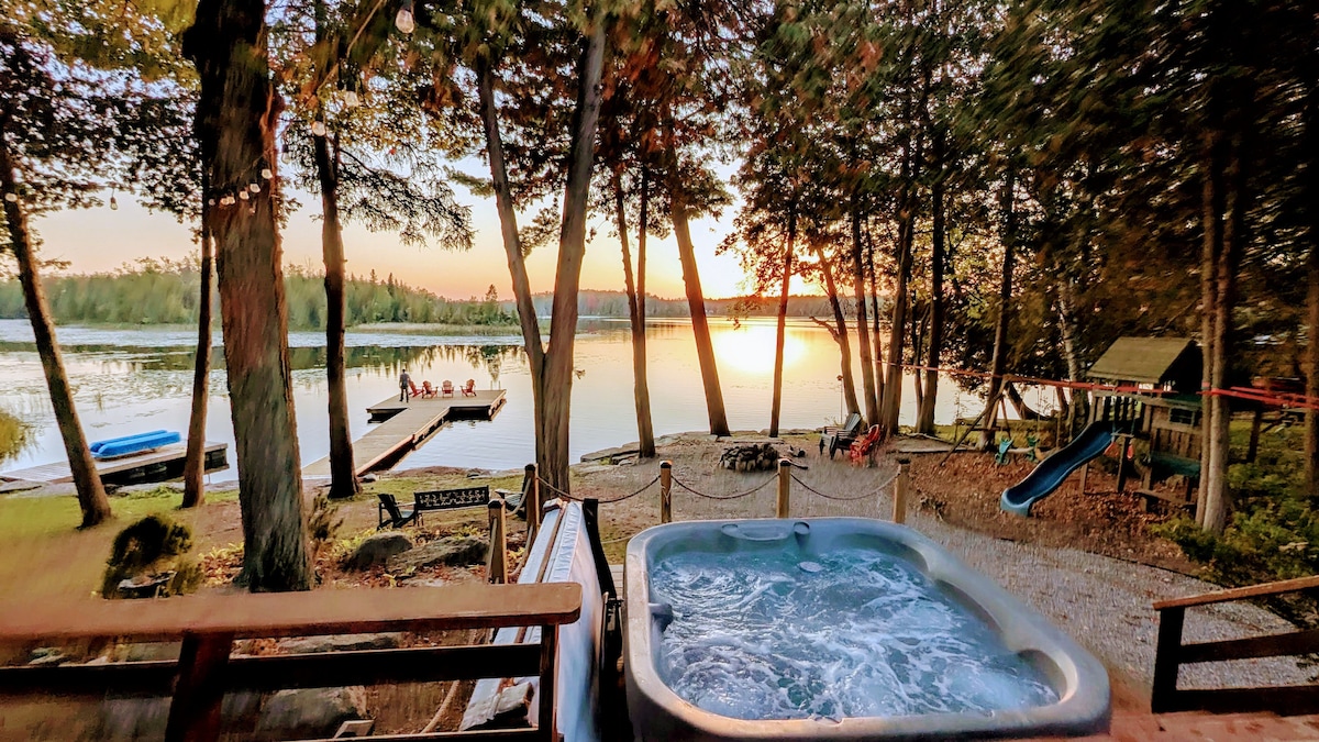 Enjoy panoramic views of Lower Buckhorn Lake with the family! Relax perched in the hot tub atop the rocks of the Canadian Shield, nestled among the tall pines. This newly updated waterfront cottage features 3 bedrooms & an open concept living space. Over 280 feet of waterfront for you to enjoy the sunrise & sunsets & fish off the dock! Get cozy on the couch, play games, or watch movies. Take a stroll around the island. Hi speed Wi-fi to work or play. 6 minutes to town, less than 2 hrs from GTA.