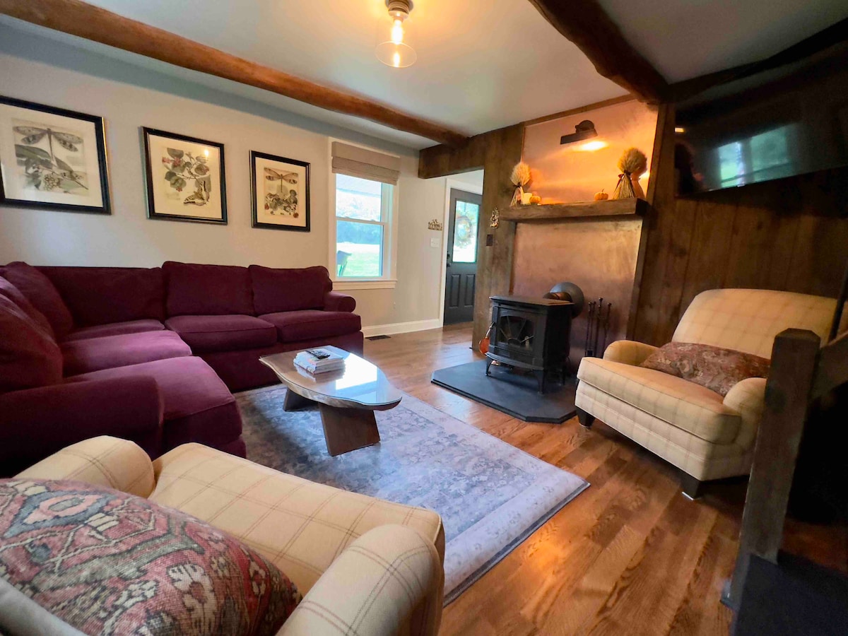 Privatna, tiha historijska kamena seoska kućica, smještena na 11 hektara kolonijalnog seoskog imanja Buckingham Hills, oko 1793 minuta od Peddlers Villagea, New Hope, Lambertvillea, Udoban, romantičan smještaj ukrašen jedinstvenim antikvitetima i udobnim namještajem. Opustite se pored velikog kamina na drva, uživajte u pametnom TV-u sa velikim ekranom, istražite nekretninu i promatrajte zvijezde pored otvorenog ognjišta! Otiđite u prostranu spavaću sobu na 2. spratu s dodatnim plišanim ortopedskim madracem.