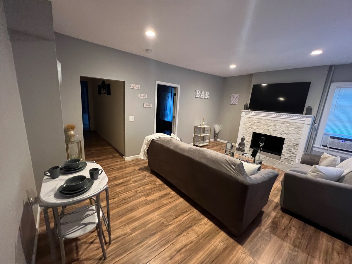 Opustite se u ovom mirnom, elegantnom prostoru s unutrašnjim kaminom i led rasvjetom koja odgovara vašoj atmosferi. Soba ima TV od 40 inča i Wi-Fi s mini frižiderom, mikrovalnom pećnicom i aparatom za kafu, besplatnu kafu i čaj. Mini frižider je opremljen osvježavajućim pićima i grickalicama za kasnonoćnom žudnjom! Objekat se nalazi blok udaljen od rute 202 i 5 minuta udaljen od željezničke stanice R6 Elm i ide od Norristowna do centra Philadelphije. Trgovački centar King of Prussia udaljen 5 milja.