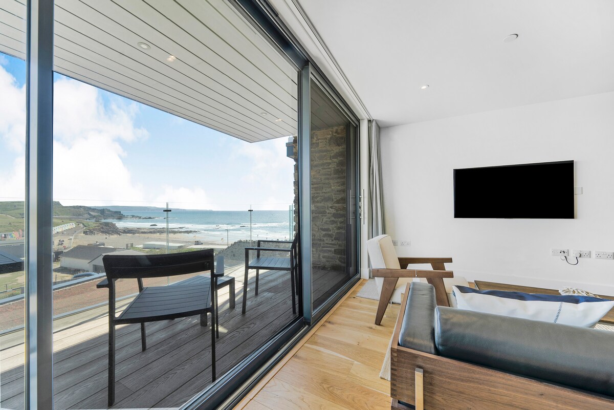 Ovaj stan koji oduzima dah nudi spektakularan pogled iz svake sobe, osiguravajući da se nikada nećete umoriti od snimanja zapanjujućeg pejzaža, od zlatnih izlazaka sunca i vatrenih zalazaka sunca do ogromnog okeana, krševitih litica i valovitih brda. Smještena odmah iznad plaže Crooklets i staze za jugozapadnu obalu, ovo je posljednja kuća na obali, što je čini utočištem iz snova za šetače i surfere. Zaspite i probudite se uz umirujući zvuk valova; ova lokacija je zaista nenadmašna.