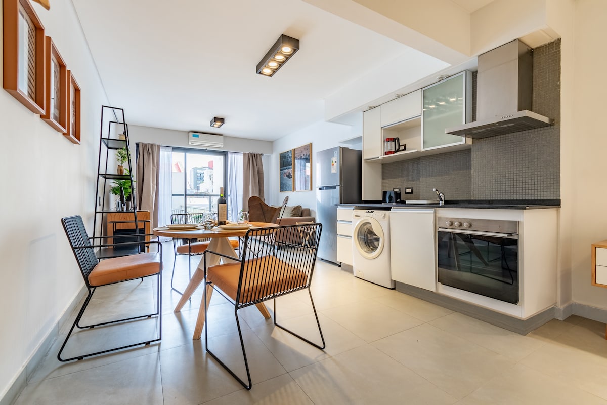 Luminoso y espacioso departamento en el corazón de Palermo Soho, a solo 100 metros de Plaza Armenia. Rodeado de bares, cafeterías, restaurantes y tiendas de diseño. Totalmente equipado para que te sientas como en casa: cocina completa, escritorio ideal para trabajar, Smart TV e internet de fibra óptica de alta velocidad. Cortinas black out en la habitación. El edificio cuenta con terraza, solárium y piscina y vistas al barrio de Palermo. Ideal para disfrutar Buenos Aires!