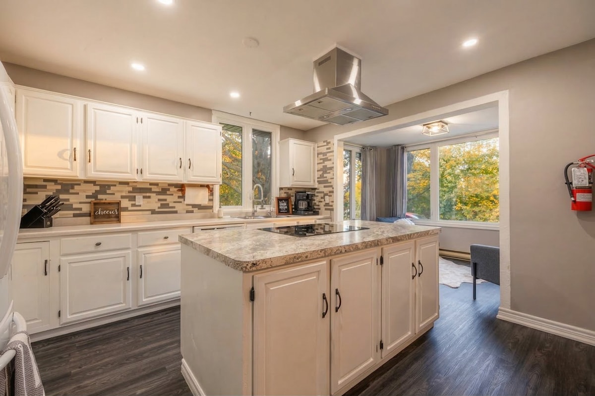 🏡 Newly-renovated, fully-equipped open-concept home! 🌊 Ideal for large families or groups exploring Niagara region, with 5 bedrooms: 3 Queen, 1 Double, and 2 Single Beds, along with 2 couches. 🛌 Enjoy the convenience of 3 full bathrooms, 2 living and 2 dining areas, and 2 kitchens, perfect for meal prep. 🧘 Enjoy Fire and Water: backyard featuring a pergola around the Fire-Pit for 12 people, 2BBQs, and Hot Tub for 4! 🌟 Your Niagara adventure begins here! 💯 Excellent Hospitality