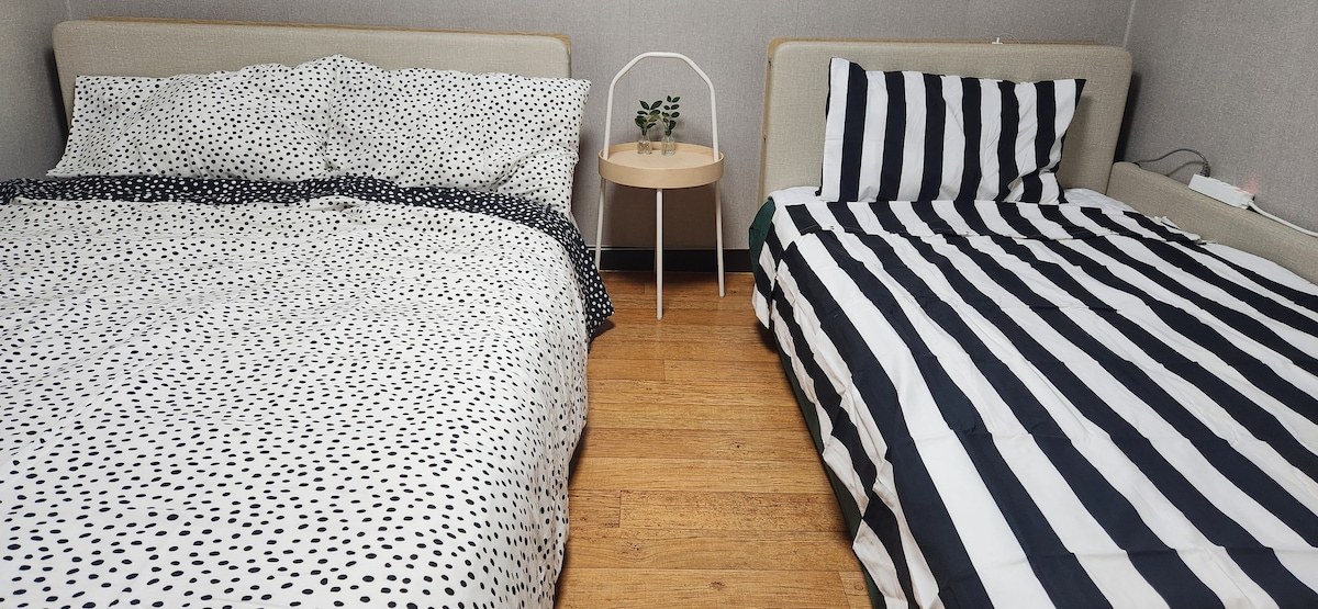 To je prikladan prostor za boravak porodice, prijatelja i ljubavnika dok su u blizini centra Univerziteta Yeongil u Pohangu. Nalazi se u blizini centra Pohanga, kao što je putovanje s porodicom i ljubavnicima, za putovanje s prijateljima, tako da je lako putovati. Nije baš sjajan, ali obezbijedit ćemo čist i pristupačan smještaj. Pogledajte fotografije:) 🏖️ Ljeti možete prošetati do plaže Yeongildae🏖️ Pušenje ️u zatvorenom prostoru je apsolutno zabranjeno Budući da se radi️ o smještaju tipa stana, pazite da ne izazovete pritužbe zbog zabava i buke u kasnim satima. U slučaju️ vandalizma i kontaminacije posteljine, naplatit će se naknada za popravku i naknada za pranje veša. Pažljivo se pobrinite za to. ? ️ Kućni ljubimci nisu dozvoljeni Nakon što rezervišete🫧 smještaj, poslat ćemo vam poruku s lozinkom i adresom smještaja dan prije vašeg dolaska.🫧 7 minuta hoda od plaže Yeongildae Stan u pyeongu prikladan za 2-4 osobe Parking je dostupan za 1 automobil U blizini užurbanih ulica Pogled na okean U blizini supermarketa i prodavnica mješovite robe Dozvoljeno je jednostavno kuhanje (s indukcionim štednjakom) Dostupne isporuke Peškir je obezbijeđen Zasebna zona sakupljanja Potrudit ćemo se da obezbijedimo čist i udoban smještaj:)