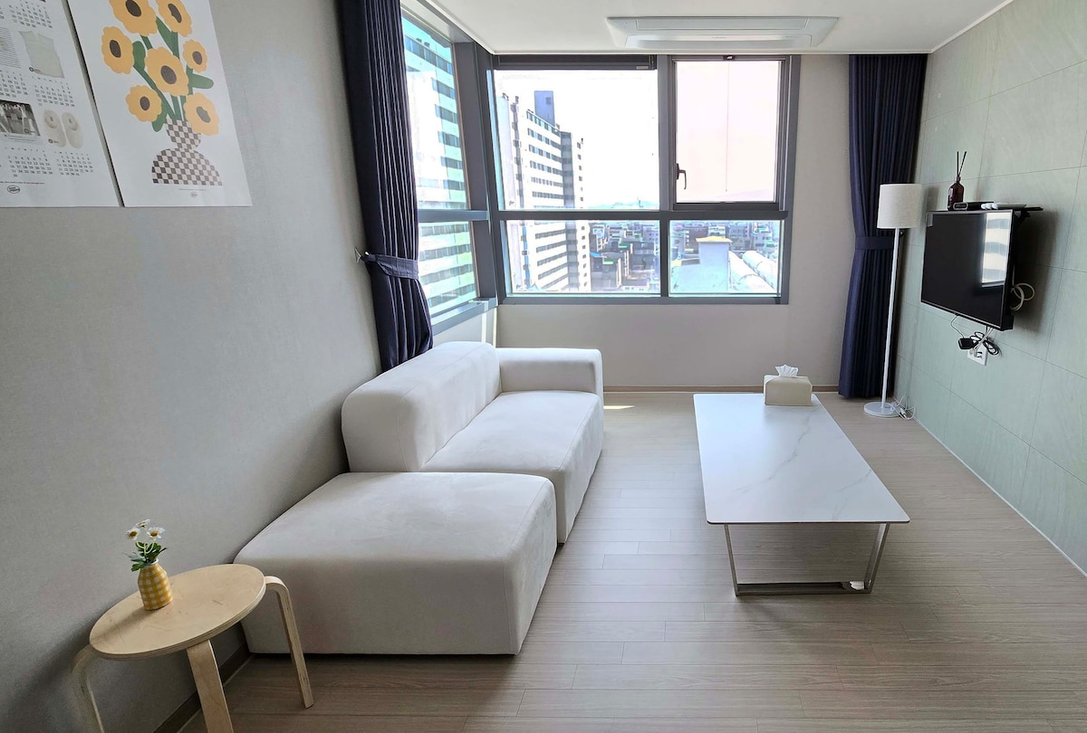 Zdravo ^ ^ Ovo je Trustay, koji živi u blizini i upravlja smještajem. Kada uđete na ulaz, prekrasno more će vas dočekati kroz prozor dnevne sobe. Provedite opuštajuće jutro uz odlazak u 12 sati Vrsta sobe - 1,5 sobe (spavaća soba + dnevna soba, kuhinja + WC) Možete uživati u najboljem pogledu na okean s 10. sprata nebodera s pogledom na okean Možete uživati u OTT videozapisu kao što su Netflix i YouTube. Ispunite prostor po svom ukusu pomoću Bluetooth zvučnika To je 5 minuta vožnje taksijem od stanice KTX Mukho/stanice Donghae i autobuskog terminala Intercity. Tu su plaža Hansom i šetnja plažom udaljena 3 minute hoda od smještaja. U roku od 5 minuta pješice, lako je doći do restorana, prvog sprata zgrade, trgovine E-Mart 24, E-Mart, trgovine, Daiso, Lotte Cinema itd. Sadržaji su dostupni u zgradi, kao što su osmatračnica na krovu, fitnes centar i vešeraj. (Djelimična naknada) - Ostalo - 1. Poslat ćemo vam poruku na dan dolaska (digitalna lozinka za zaključavanje ulaznih vrata, jezero i uputstva) na dan dolaska. 2. Adresa objekta: 136-4, Hansum-ro, Donghae-si, Gangwon-do