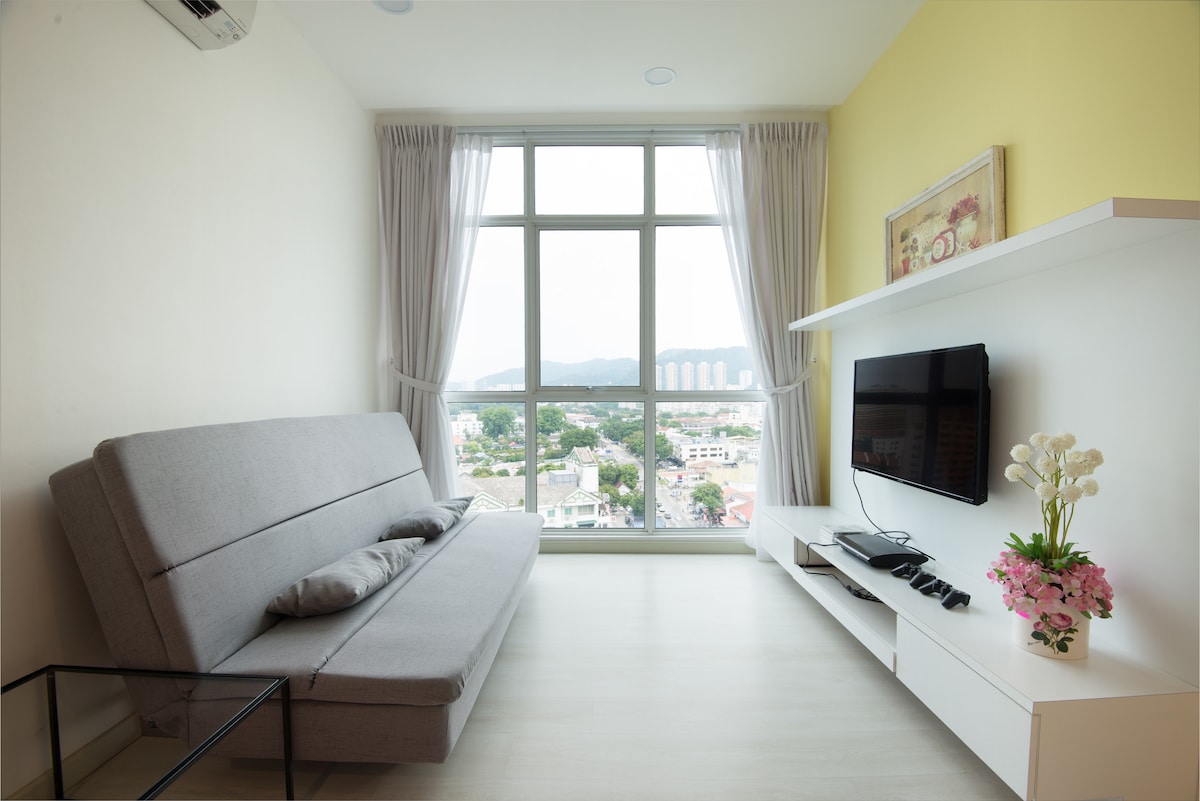 aPARTMAN S POGLEDOM NA MORE na SAVRŠENOJ LOKACIJI Šarmantan, udoban apartman s pogledom na more s NETFLIXOM, brzim Wi-Fi-jem i APARATOM ZA VODU koji se nalazi samo nekoliko km od centra grada i UNESCO-ove svjetske baštine. Pješke: - 7-11 (24 sata) Prodavnica u prizemlju - Štandovi s hranom, restorani, supermarket i mokra pijaca Automobilom: 5 km - UNESCO-va baština/G 'Nown 6 km - Gurney Drive 8 km - trgovački centar Queensbay 14 km - Aerodrom Int'l 16 km - plaža Batu Ferringhi