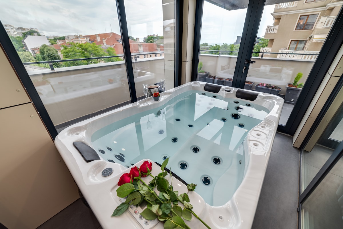 Uživajte u boravku na našoj vrhunskoj lokaciji u Varni! Ovaj jednosobni stan namješten u jedinstvenom klasičnom stilu nudi unutrašnji jacuzzi! Uživajte u vrhunskom luksuznom iskustvu s našim jacuzzi stanom, gdje će kombinacija udobnosti, elegancije i izuzetnog pogleda stvoriti uspomene koje će trajati cijeli život.