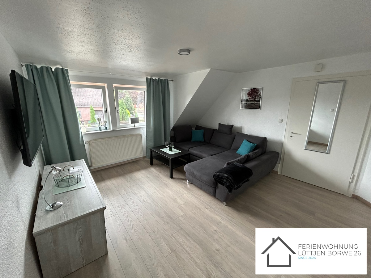 Vrhunski opremljen - miran - pogled na selo! Dobro došli: bilo za kratko putovanje u prekrasno okruženje Hanovera, posjetu našim prijateljima i porodici, ili... ovdje se možete osjećati ugodno. Ovaj stan ima sve što vam je potrebno. Veliki krevet, dodatni kožni kauč, kuhinja s pločom za kuhanje, frižider, mikrovalna pećnica s roštiljem/vrućim zrakom, barska stolica, pametni TV, Wi-Fi, kamin, terasa i senzacionalan pogled na šumu i livadu konja. Najbolja lokacija: 3 minute do Burgwedela, 30 minuta do Hanovera!