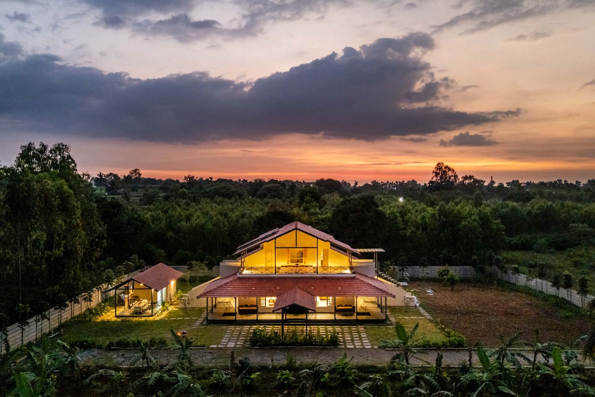 Ovaj objekat se nalazi unutar doline za odmor koja je površina od 400 hektara s prirodnim okruženjem i prekrasnim pejzažima. Nalazi se na cesti Hosur denkanikottai koja je udaljena oko 50-60 km od Bangalorea(u zavisnosti od područja iz kojeg dolazite). Objekat ima Smart TV Frižider Mikrovalna pećnica Toster Indukciona peć Brzi Wi-Fi Društvene igre 2 spavaće sobe s kupatilom i dodatnim zajedničkim kupatilom Klima uređaj u obje spavaće sobe. Restorani na otvorenom Prostor za druženje na terasi