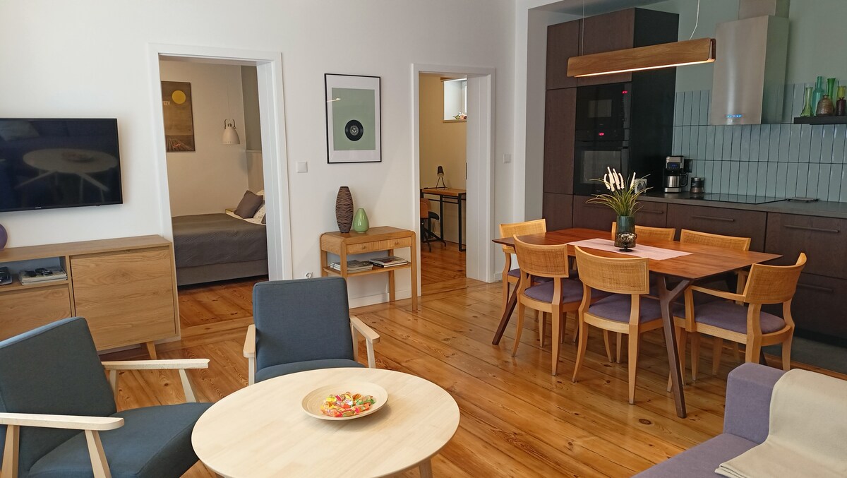 💎 🇫🇷 Osjetite parišku atmosferu! 🥂 Uživajte u kaminu s klima-uređajem ❄️ 🌡️, gramofonu 💿, vrhunskom Marshall audio sustavu 🎼 i BRZOM Wi-Fi mrežom (udobnost i nezavisnost su zagarantovane). Ovo je vaše ekskluzivno utočište s dvije sobe u stilu Art Décoa, savršeno za luksuzan produženi vikend ili poslovno putovanje. Elegantan stan s klima-uređajem u centru grada, u historijskoj stambenoj zgradi iz 1906. godine. Otkrijte najbolje od Bydgoszcza – Trg, kazalište i šarmantne staze uz rijeku Brdu su odmah iza ugla.