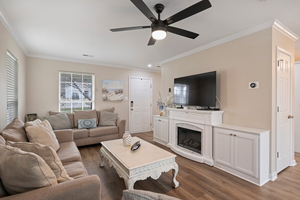 Ispružite se i opustite u našem prostranom renoviranom domu od 3400 kvadratnih metara. Uronite u bazen za zajednicu, igrajte kukuruznu rupu u ogromnom dvorištu, pobijedite bakinin neporaženi naziv Connect4 ili se opustite pored kamina s dobrom knjigom. Napunite baterije u kafiću ili prošetajte našim mirnim, prijateljskim susjedstvom. Pripremite gurmanski obrok u našoj potpuno opskrbljenoj kuhinji ili se kratko vozite do mnoštva restorana. Završite dan umirujućom kadom s mjehurićima i mirnom noći na madracima od memorijske pjene.