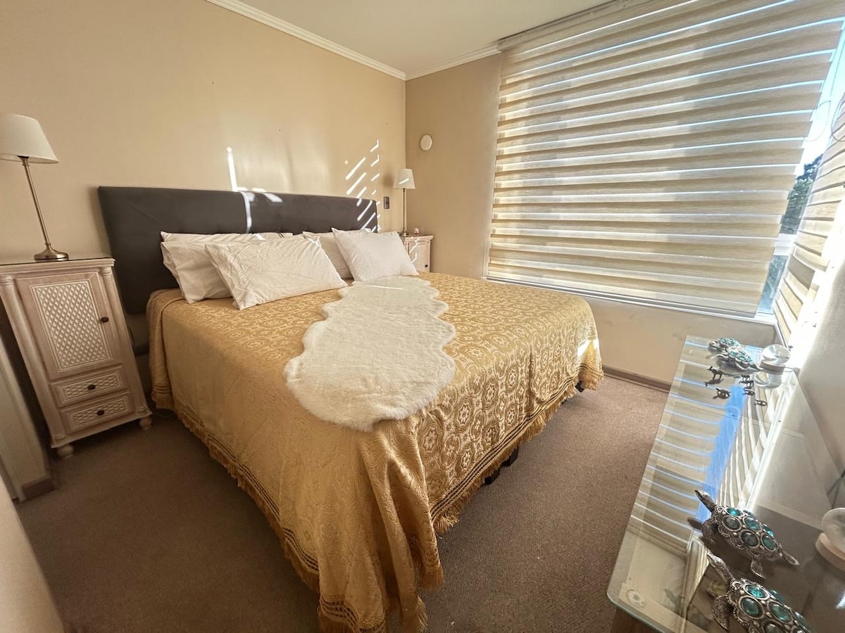 Disfruta de la sencillez de este alojamiento tranquilo y céntrico. A pasos de supermercados, restaurantes, excelente ubicación y locomoción a la puerta. Es condominio con vigilancia las 24hrs. Departamento con dos habitaciones y dos baños, habitación principal en suite, las camas son de 2 plazas. Living comedor, cocina full equipada con lavadora, secadora de ropa. Además de cocina, horno eléctrico y horno microondas, juego de ollas, servicio para 4 personas. Además consta de una amplia terraza.
