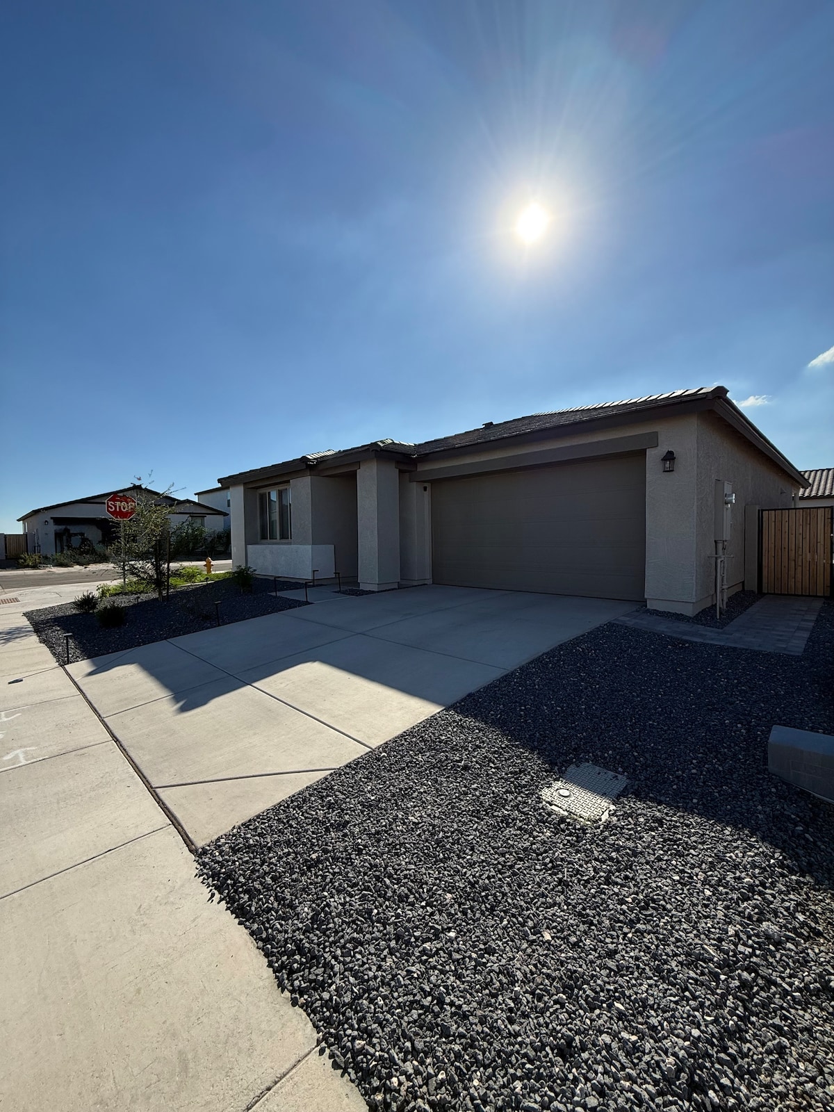 Welcome to our charming 940 square foot Airbnb nestled in the heart of the serene Sonoran Desert. The home is near the edge of a rural neighborhood, just 10 miles south of Florence, Arizona. This freshly renovated home boasts a spacious interior that comfortably sleeps 4, with room for more if needed. Outside, you'll find yourself on the north half of a fully fenced and gated 2.5-acre property, offering privacy and security for a peaceful retreat.