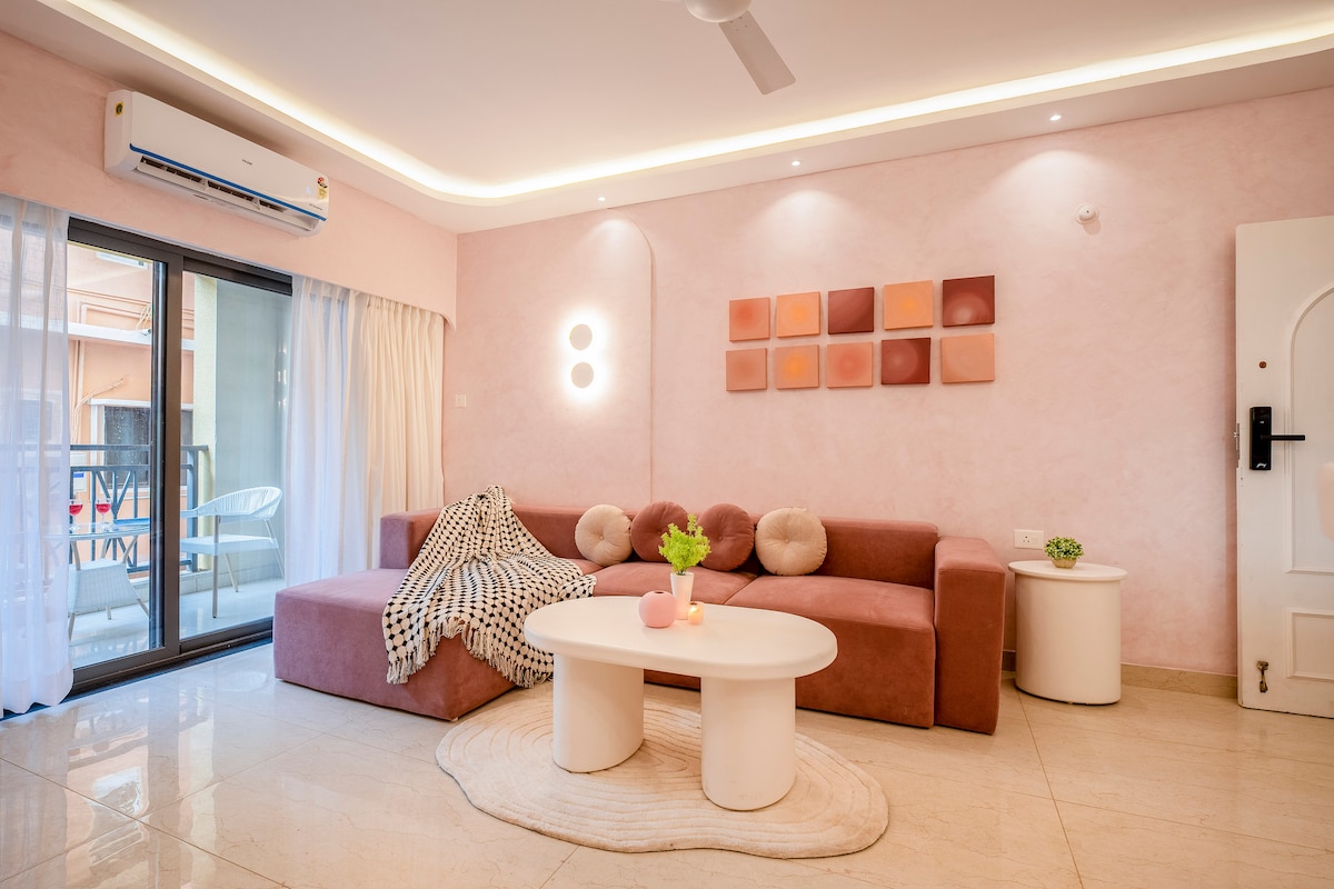 Welcome to La Amore by Pink Papaya Stays an elegant 1BHK retreat in the heart of Candolim. Just 10 minutes from the beach, this cosy apartment is perfect for couples or small groups. Relax in the private jacuzzi or sip coffee on the balcony. With 1.5 baths, the space offers both comfort and convenience. Located on the main road next to Hilton, you're ideally positioned to explore Candolim's best restaurants, cafes, and shops. Enjoy tranquillity and let La More be your home away from home.