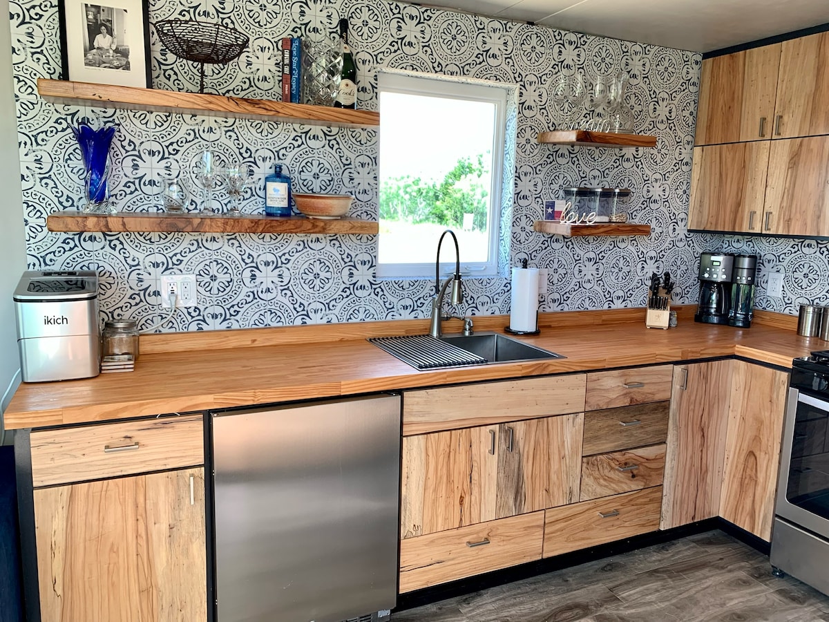 Dobro došli u Hummingbird House, gdje se možete odmoriti i opustiti u svom domu u kontejneru na selu. Dizajnirali smo dva kontejnera imajući na umu vašu udobnost. Bilo da se želite opustiti u spavaćoj sobi i slušati našu kolekciju ploča ili se opustiti u velikoj vanjskoj kadi okruženoj našim bujnim pejzažima, pobrinut ćemo se da imate sve što vam je potrebno. Ako želite odlutati u Round Top, Lockhart (najbolji roštilj u Teksasu) Smithville (poznat i kao film Hope Floats) COTA Race track ili putovanje u Austin.